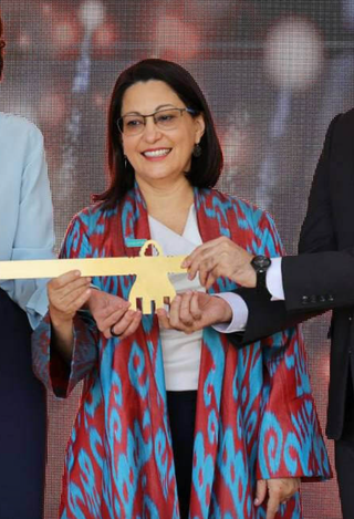 Representative of UNICEF in Uzbekistan wearing Bibi Hanum.