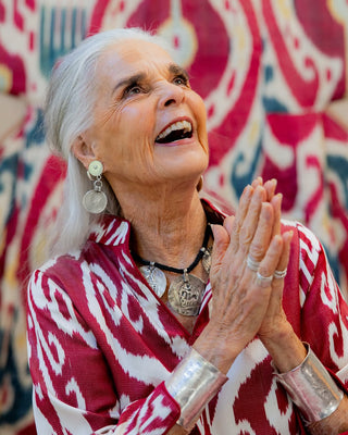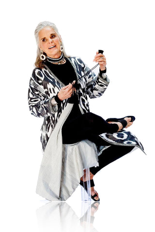 Global fashion icon, style legend — wearing Bibi Hanum silk ikat.