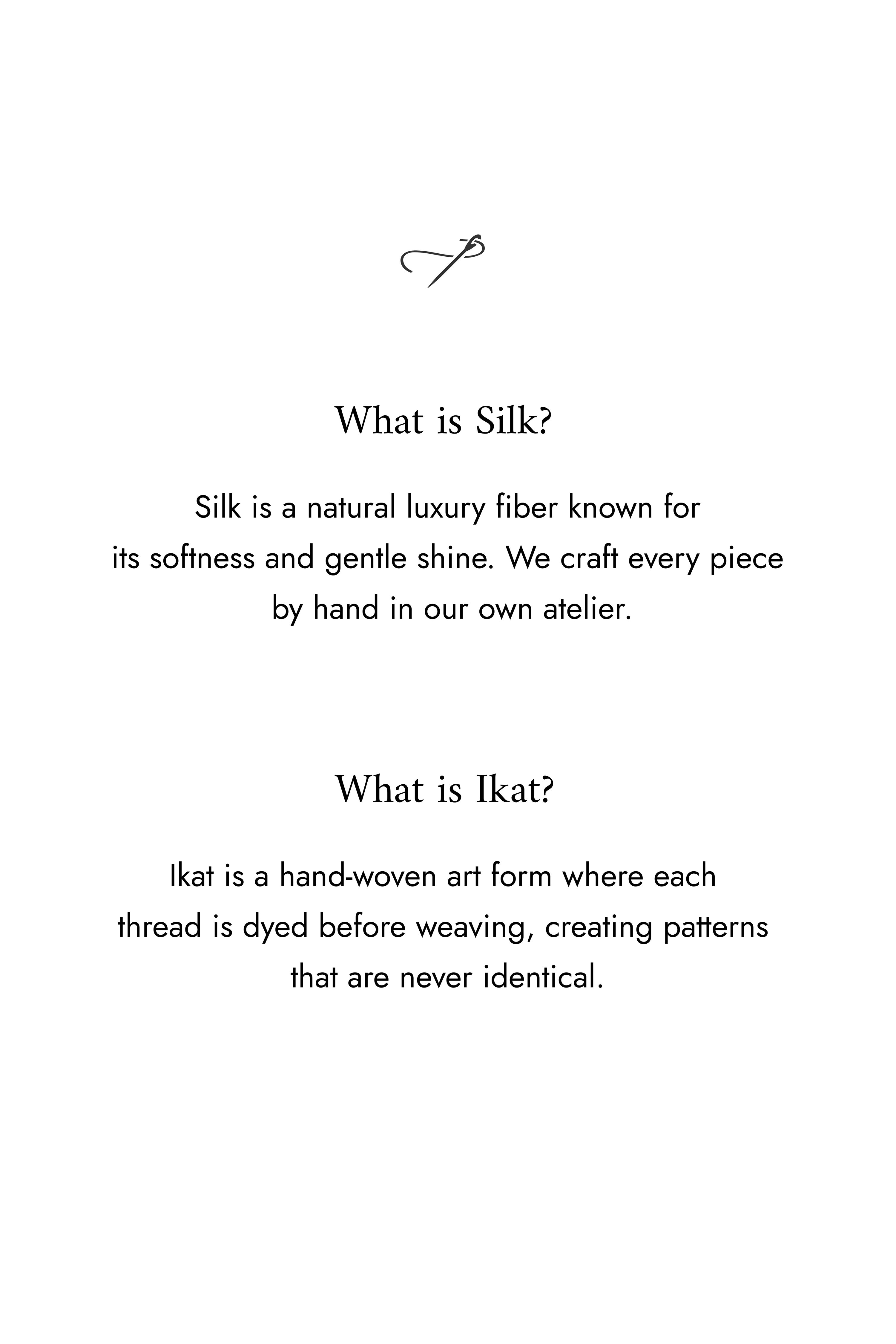 All Bibi Hanum garments are handmade from hand-woven ikat, so small variations (1–2 cm) are natural.