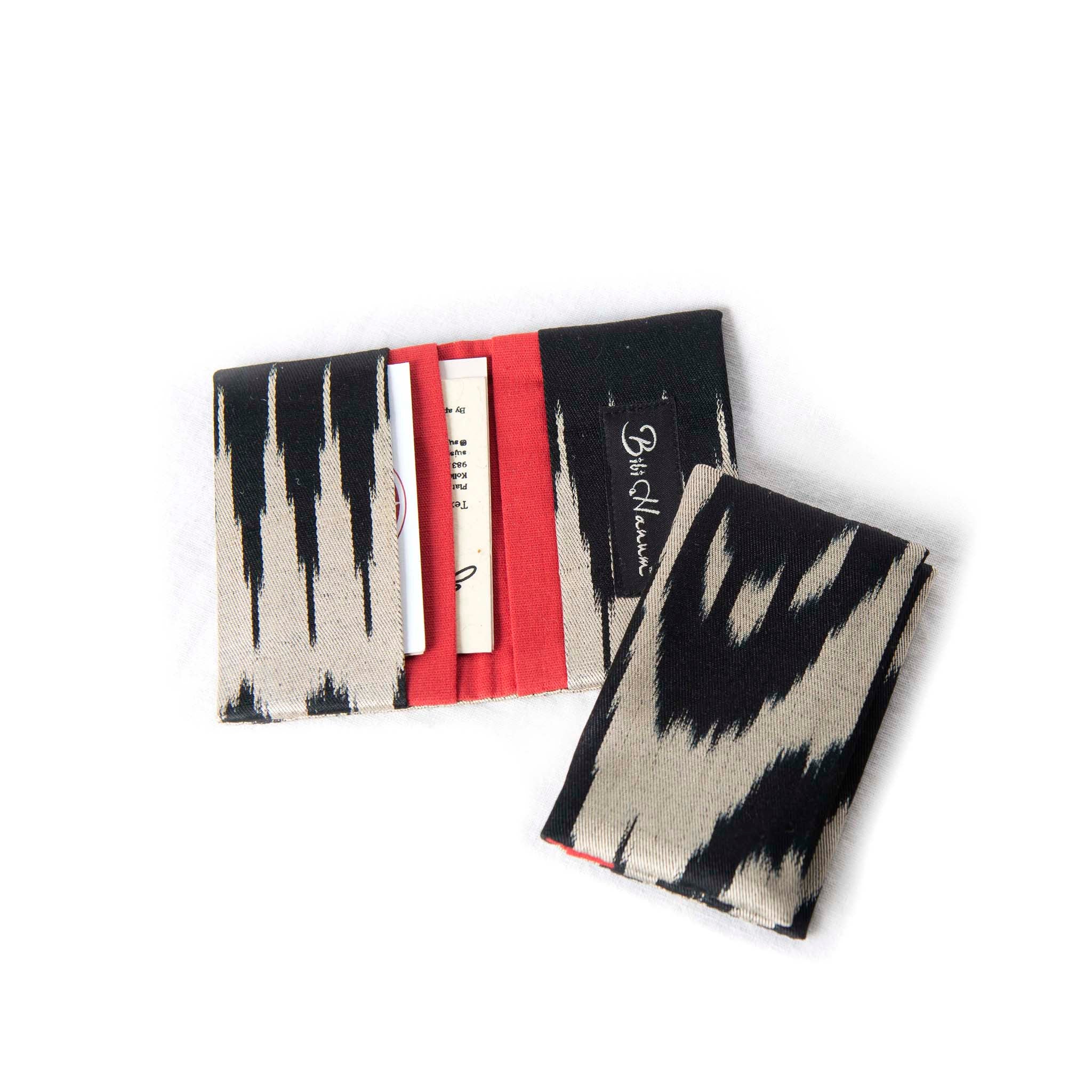 This silk ikat card holder is crafted from handwoven silk-cotton fabric, offering a refined way to keep your essentials organized. Designed with four functional pockets, it holds cards securely while remaining compact and lightweight. As each piece is made from authentic ikat, the patterns may vary slightly, making every item uniquely yours. Perfect as a thoughtful gift, it comes with a protective cover bag.
